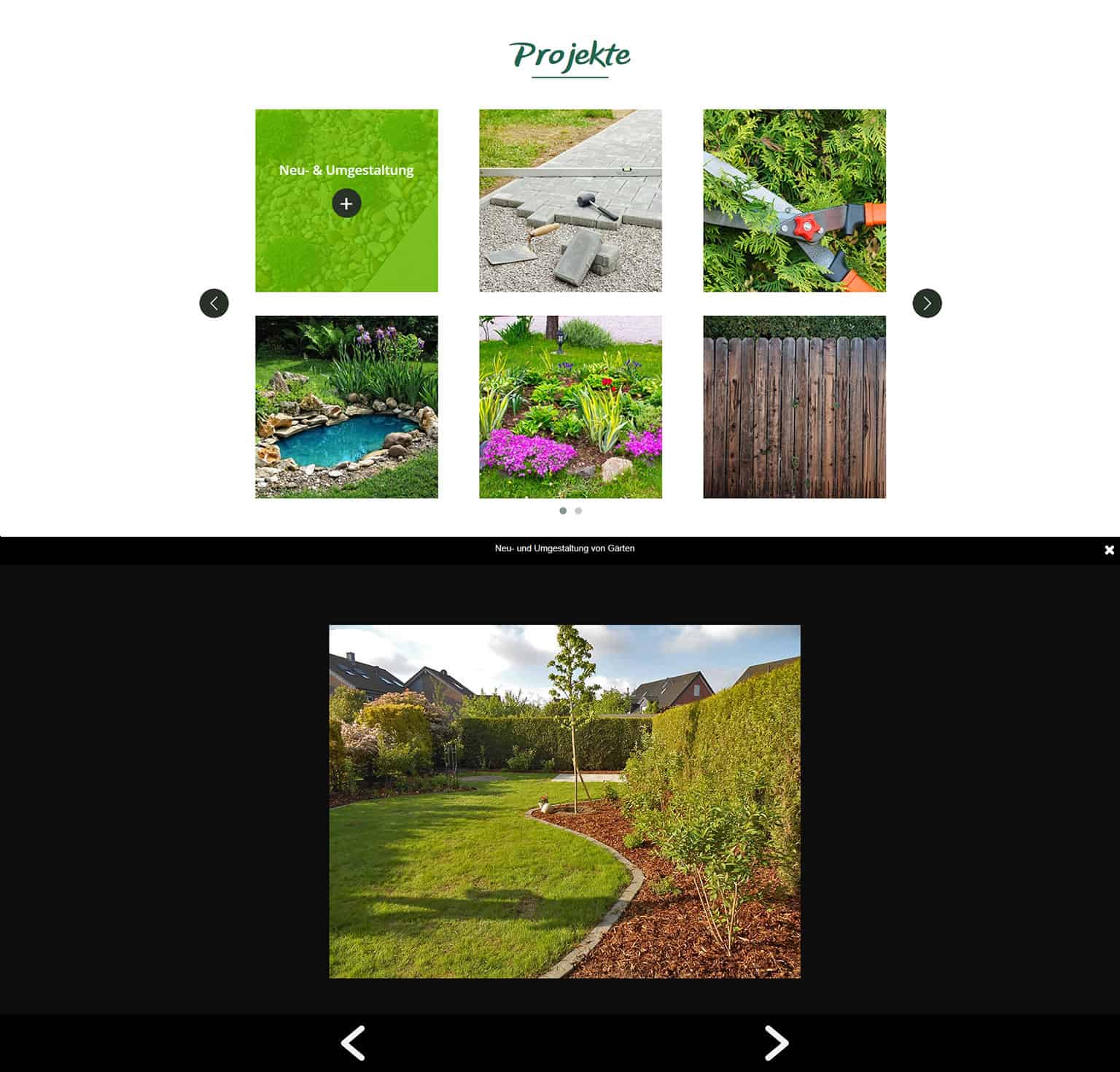 Daher musste das Leistungsangebot zwar kurz, aber dennoch ausführlich integriert werden. Zu diesem Zweck musste ein vorhandenes Portfolio-Plugin um eine Gallerie-Funktion erweitert werden. Auf diese Weise konnten projektbezogene Fotos hinterlegt werden.