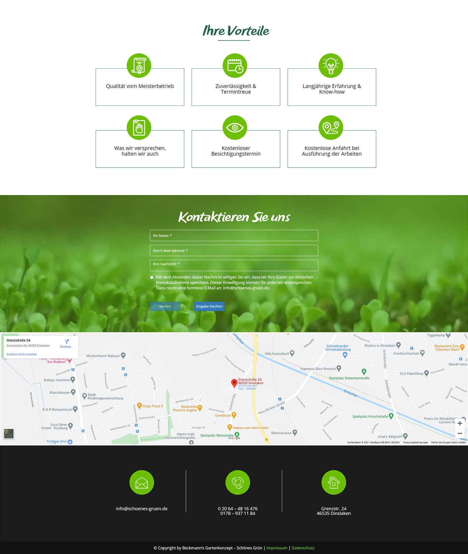 Der Garten- und Landschaftsbau Meisterbetrieb Beckmann's Gartenkonzept "Schönes Grün" hat einen One Pager in Auftrag gegeben, auf dem das Angebot an Dienstleistungen ebenso vorgestellt werden sollte wie Bilder seiner Referenzen.